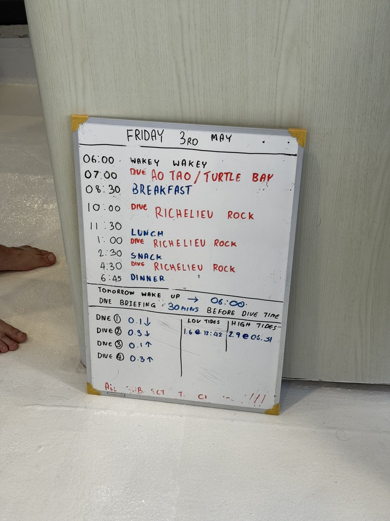 - 5.4 早上 6 点起床潜水,2 潜,下午送回酒店