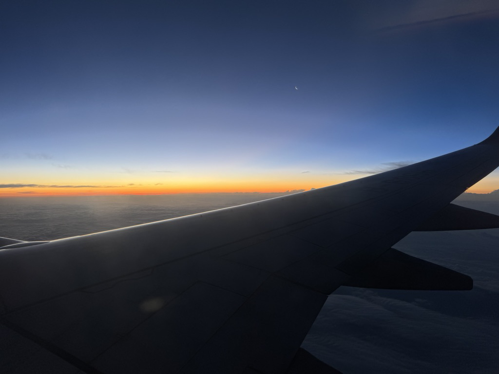 到了早上六点,我们终于登机了,我和 buddy 的座位是三人位的左右两个,中间坐了个日本的男生,由于 buddy 之前在日本留过学,会说日语,我们很快就聊开了。聊的话题有很多,我的日语仅限于动漫里的常见用语,所以基本上是 buddy 在和他聊,偶尔会给我做下翻译。他这次出来玩是在北京转机,要去孟加拉国、泰国、越南旅行,人家出来旅行都是一段时间内去好多个国家,我们十几天都在同一个地方,哈哈哈,旅行的方式真是有好多种。